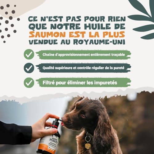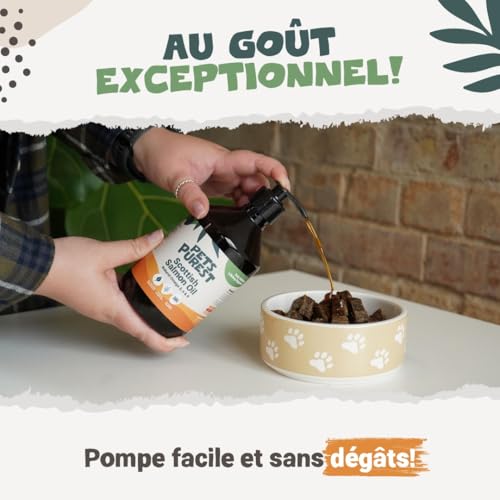 Pets Purest Huile de Saumon pour Chien et Chat 500ml, Riche en Omega 3 6 9 et Vitamine E. 100% Naturel Saumon Huile Omega 3 supplément pour Chiens, Chats, Chevaux, Furet & Animaux de Compagnie